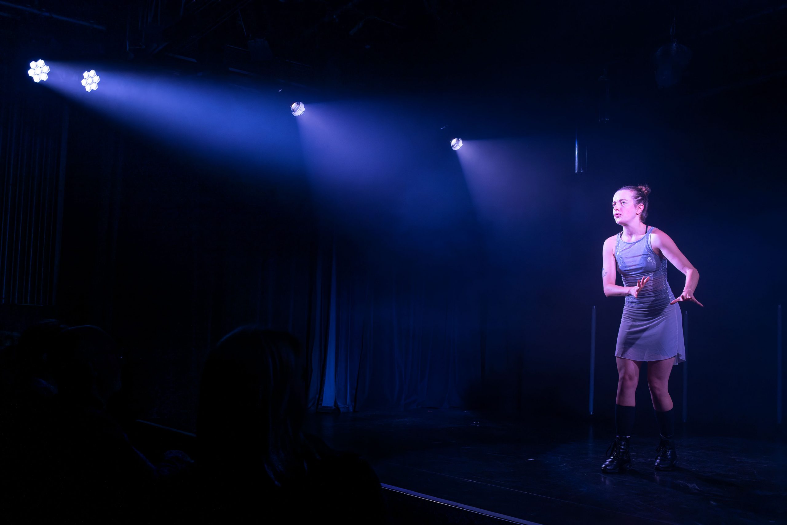 Eine junge Frau ist der zentrale Punkt in einem fast leeren Raum. Mit ihrem Ausflug in die Clubkultur trifft sie den Nerv der Zeit. Sie verleiht mit ihrer kontrollierten, aber intensiven Körperlichkeit und den ausgewählten Texten, ihrer Performance eine besondere Note. Alice D wünschen wir, dass sie aus dem tiefen Tunnel aus Beats und Drogen einen Ausgang findet und das Larvenstadium hinter sich lässt.