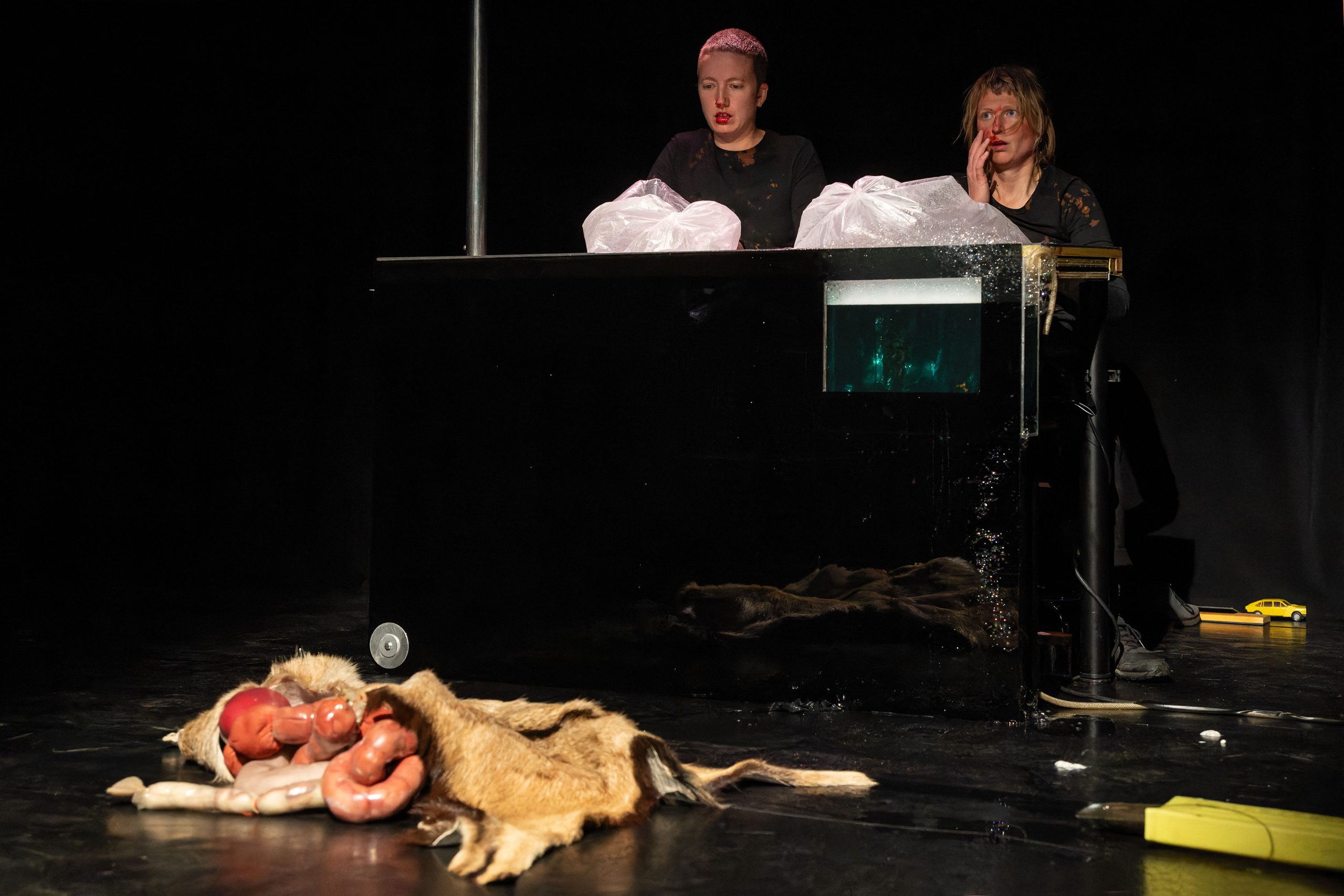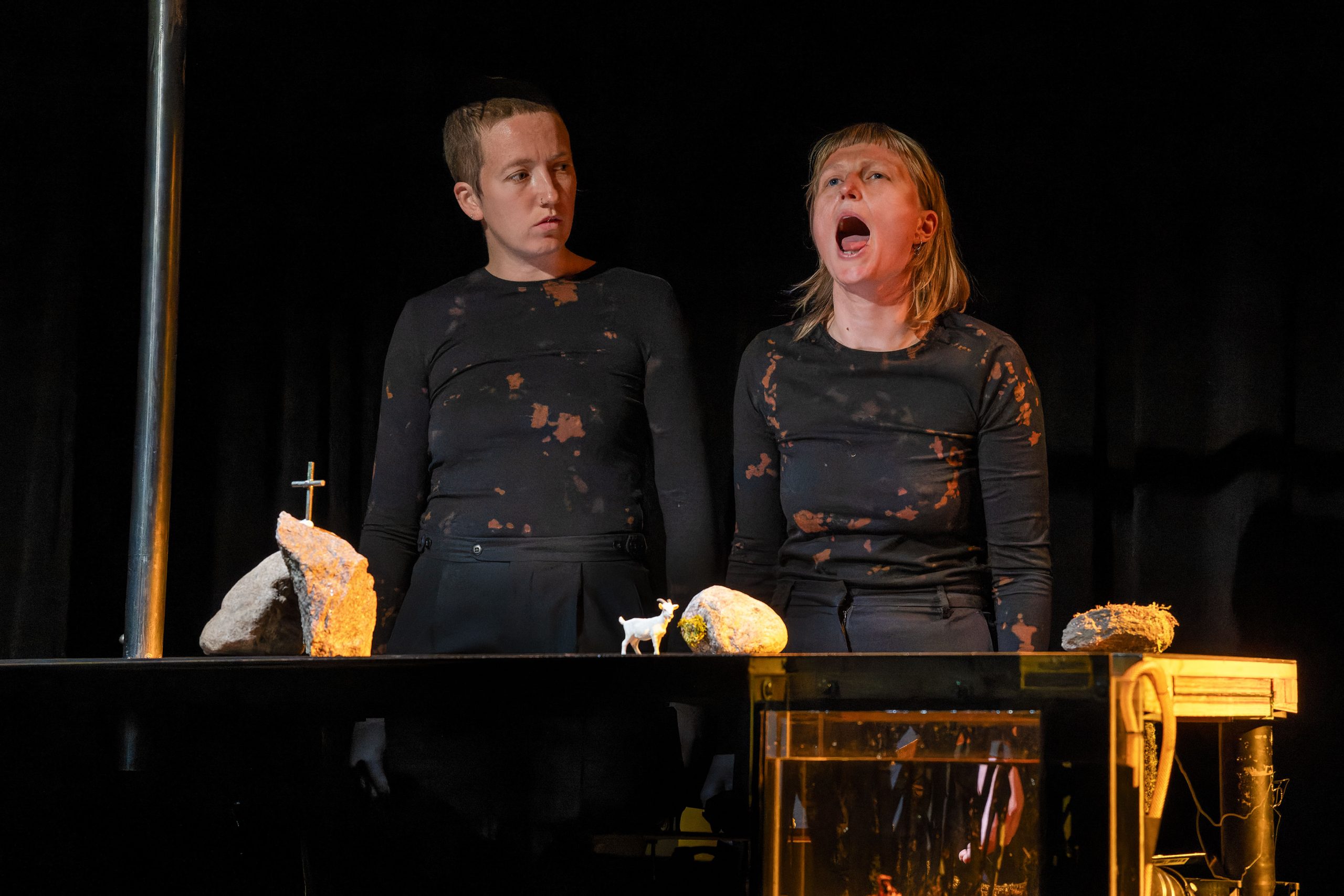 Drei Spielerinnen stellen sich am Ende der Welt die Frage, ob es sich noch lohnt, ein Warndreieck aufzustellen und warum die Ziege so eindrücklich schaut.