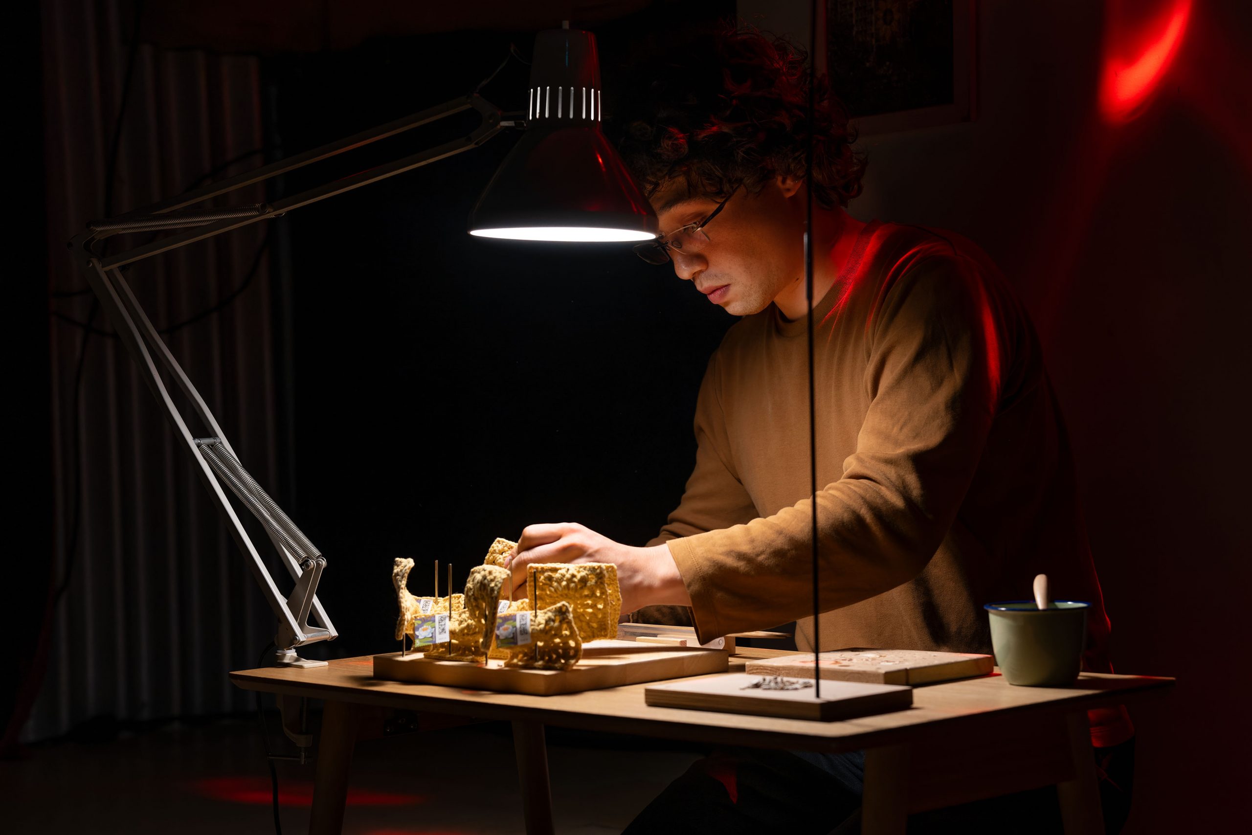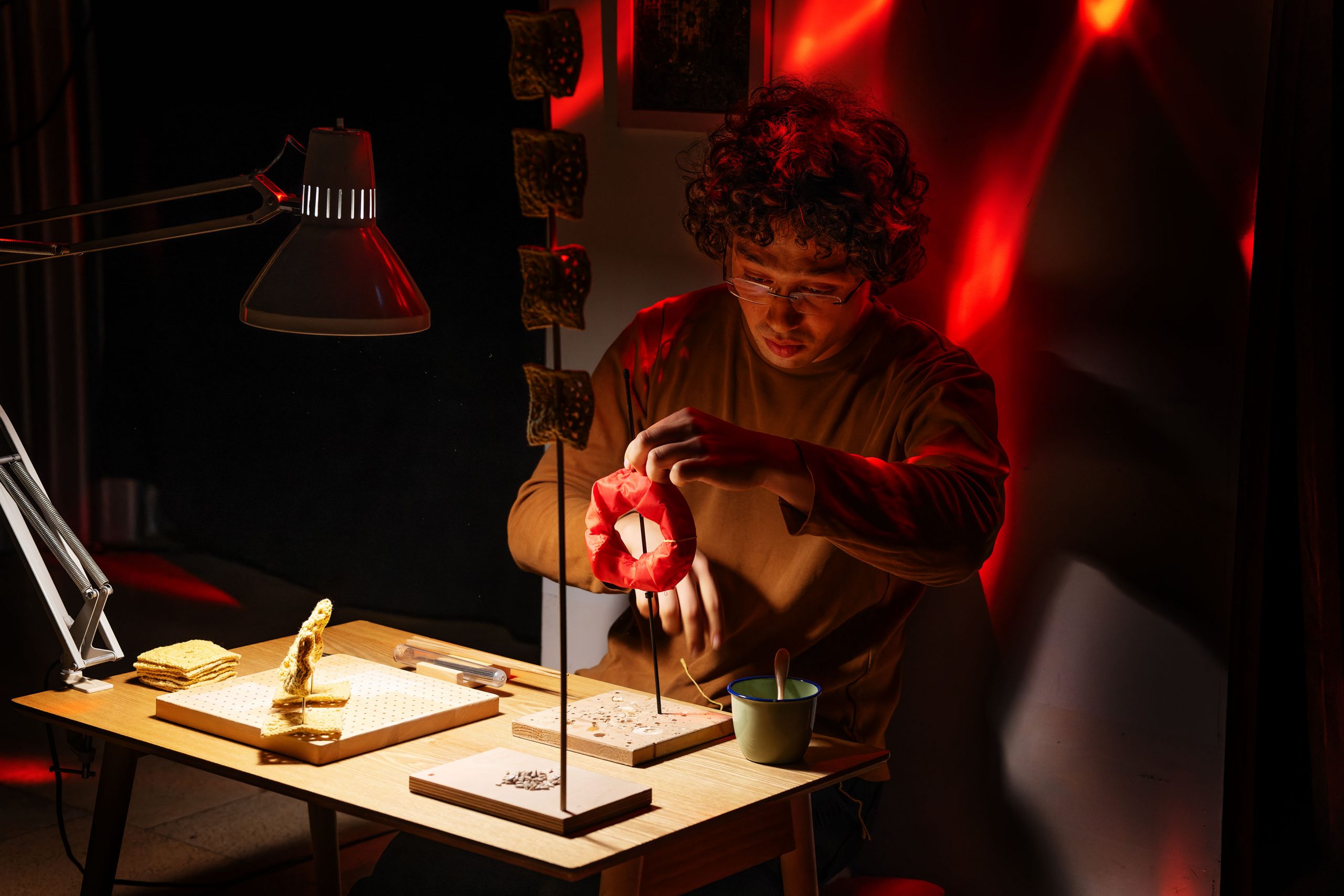 Diese 15minütige Objekttheater-Arbeit hangelt sich erzählerisch an fiktiven Erinnerungen einer Person entlang, die als Gastarbeiter*in in die DDR kam, nach der Wende in Rostock blieb, das Pogrom in Rostock-Lichtenhagen erlebte und den heutigen Rechtsruck miterlebt. Die Erinnerungen werden aus der Ich-Perspektive des Erzählers geschildert und mit aus Häkeldeckchen gesteckten Bildern illustriert.